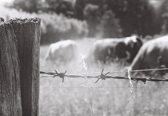 Мирний рух життя завжди має тінь, сплетену з колючого дроту. Серія чорно-білих фотографій, виконана протягом 2024 року на плівку Fomapan 200 та Kodak T-Max 400 на Зеніт, досліджує подвійність життя тварин на фермі: видимий спокій та приховану обмеженість. На цих світлинах — не лише тварини й не лише сільський пейзаж. Це простір, де зустрічаються спокій та обмеження, життя та його тінь. Тиша поля вже не є абсолютною. Вона наповнена прихованим напруженням, адже ідилія за огорожею виявляється умовною. Я хотіла передати подвійність: з одного боку — природа, яка здається вільною й безтурботною, а з іншого — людина, що накладає свій слід у вигляді огорож, кордонів, дроту. Цей проєкт — спроба поглянути на звичну сцену інакше. Це не просто документування життя на фермі, а роздуми про природу свободи та межі, які визначають наші стосунки з нею. Чи можемо ми бачити красу без огорожі? Чи завжди мусить існувати лінія, яка розділяє «тут» і «там»? У далині — корівки, їхні постаті плавно вплітаються у ритм землі. Вони повторюють рухи часу: неквапні, звичні, тихі. Їхнє існування здається простим і природним, воно нагадує гармонію, якої ми всі шукаємо. Але на передньому плані завжди з’являється дріт. Його металеві вузли прорізають простір, наче лінії, які неможливо стерти. Цей дріт — не лише частина ферми. Він перетворюється на символ: межі, що ми будуємо, обмеження, які ми несемо, кордони між «свободою» й «належністю». Чорно-біла плівка підкреслює контраст між ідилічною картинкою та невидимим тиском: пасторальна сцена перетворюється на нагадування про те, що навіть у «природних» умовах існує структура підпорядкування. Проєкт ставить питання: чи є цей спокій справжнім, якщо він можливий лише в межах огорожі? Таким чином, моя серія фотографій була покликана дослідити поняття свободи, кордонів і того, як людина вибудовує стосунки з природою. The quiet rhythm of life is never without the shadow of barbed wire. This series of black-and-white photographs was made during 2024 on 35mm Fomapan 200 and Kodak T-Max 400 on Zenit camera, explores the fragile duality of life on the farm: the visible calm and the quiet confinement that lies beneath it. These photographs are not simply about animals, nor are they merely rural landscapes. They open a space where calm and restriction converge, where life is shadowed by its own containment. The silence of the field is no longer whole. It is charged with tension, because the idyll behind the fence is never absolute—it is conditional, fragile, always marked by a limit. In every frame lives this duality: on one side, nature that appears free and unburdened; on the other, the human presence inscribed in wire, fences, and control. My project seeks to turn a familiar pastoral scene into a site of questioning. It is not merely a record of farm life, but a meditation on freedom, its limits, and the delicate relationship we hold with nature. Can beauty exist unframed? Must there always be a line that divides “here” from “there”? The cows, small figures in the distance, dissolve into the rhythm of the earth. Their movements echo the passage of time—slow, familiar, unremarkable. Their existence seems simple, natural, almost eternal, evoking the harmony that we are all searching for. But the foreground interrupts this quiet image: wire returns again and again, slicing through space with its unyielding knots. It is no longer just part of a farm structure. It becomes a symbol—the boundaries we build, the constraints we accept, the fragile line between “freedom” and “belonging.” The choice of black-and-white film heightens this tension. What at first appears to be an idyllic pastoral scene is disrupted, revealing a structure of subordination that persists even in so-called “natural” conditions. The work asks: can serenity be genuine if it exists only within the limits of a fence? So my series of photos unfold as meditations on freedom, boundaries, and the ways humanity inscribes its own systems of order into the landscape of nature.